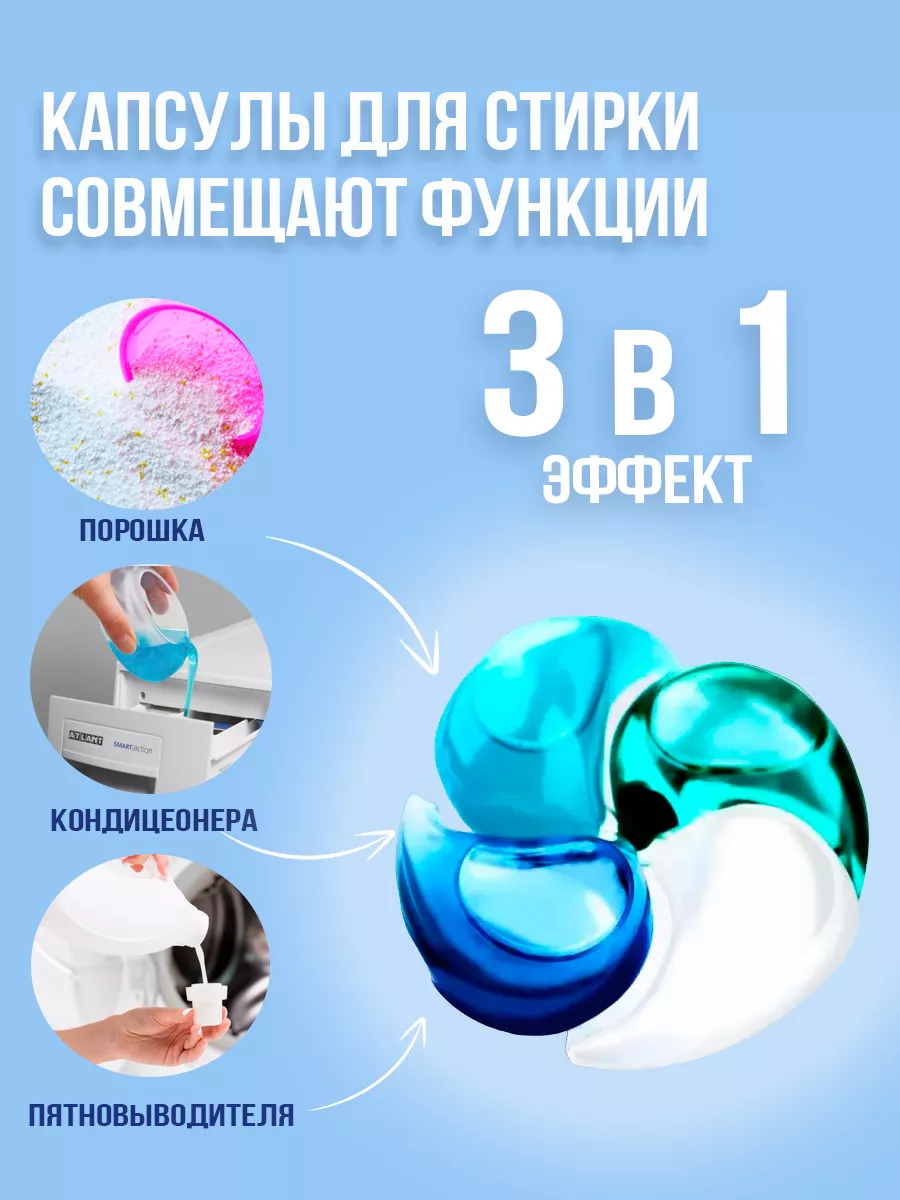 Капсулы легко использовать - просто положите одну капсулу в барабан стиральной машины перед началом стирки, что делает процесс стирки более удобным и эффективным.