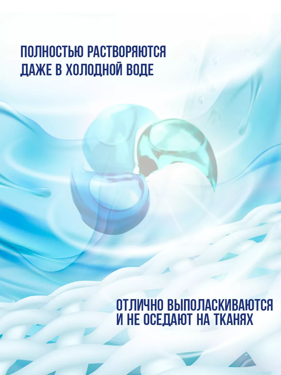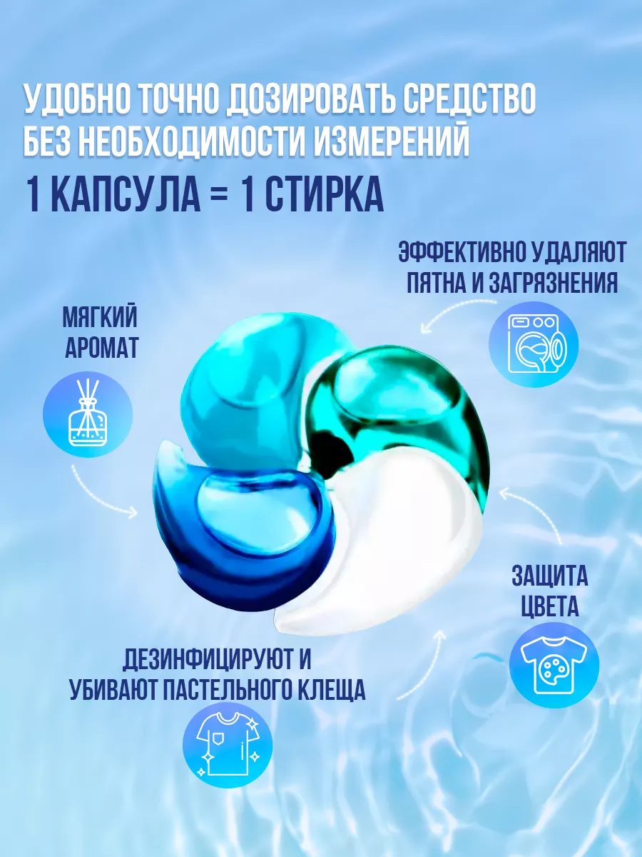 Капсулы предназначены для эффективного удаления бактерий, а также защиты цвета одежды благодаря своей специальной формуле.